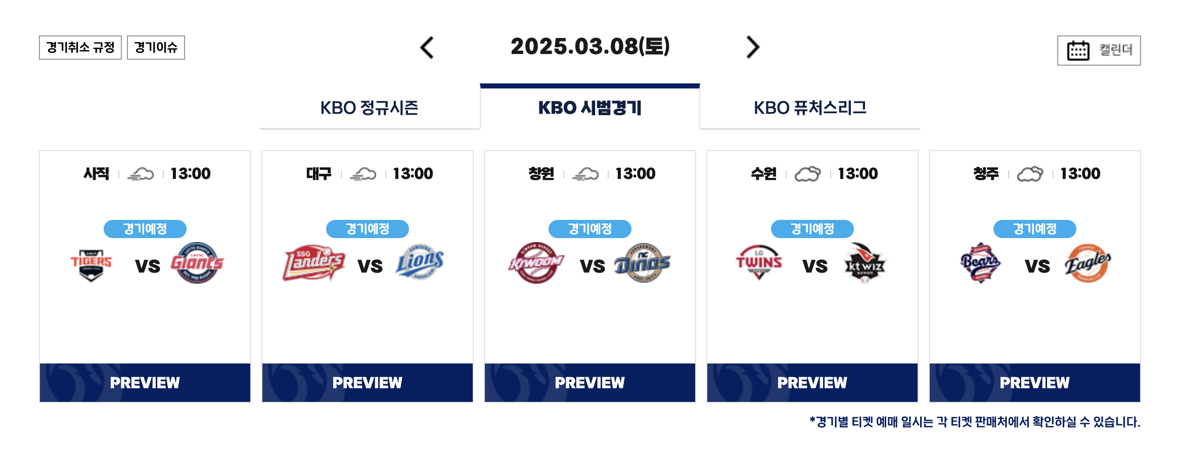 시범경기 주요 정보