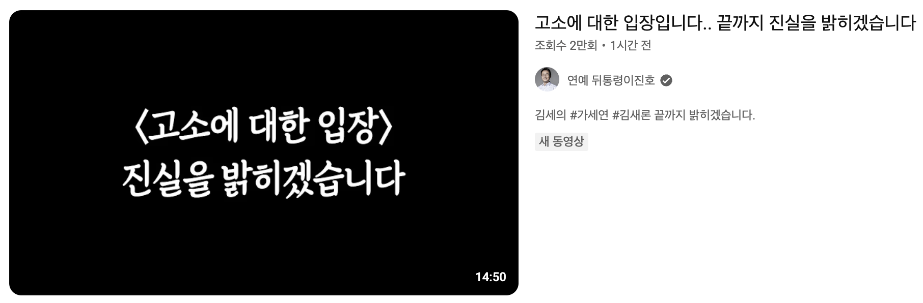 고(故) 김새론과 배우 김수현의 교제설을 둘러싼 진실 공방이 법정으로 향합니다. 김새론 유가족 측은 유튜버 이진호를 상대로 명예훼손 혐의 고소장을 제출, "교제 자작극" 주장이 고인의 명예를 훼손했다고 주장했습니다. 이 사건은 온라인 상 허위 정보 유포와 사생활 침해 논란에 불을 지폈습니다. 과연 법원은 어떤 판단을 내릴까요? 김수현 측의 입장은 무엇일까요? 대중의 관심이 집중되고 있습니다.